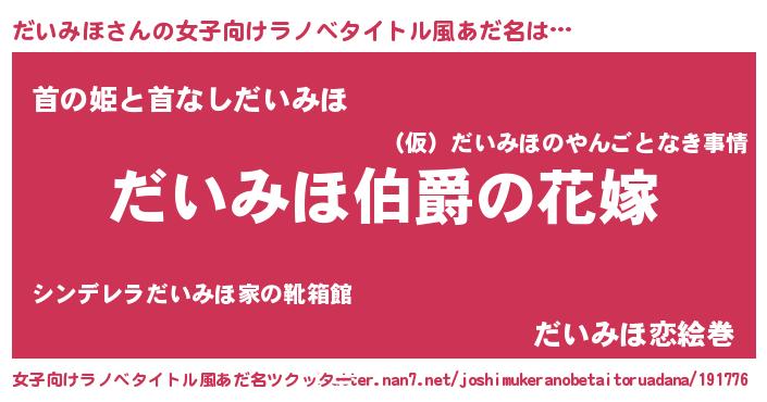 | 欧米人風あだ名 | 『だいみほクリステル』 |