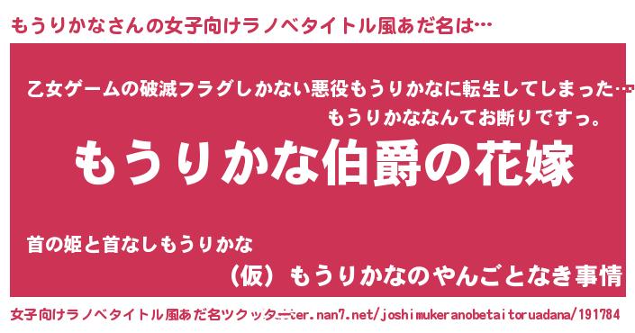 | 男性向けラノベタイトル風あだ名 | 『やはりもうりかなの青春ラブコメはまちがっている 』 |