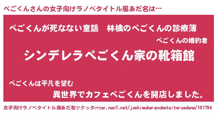 | 意味不明あだ名 | 『住所不定無職ぺごくん(41歳)』 |