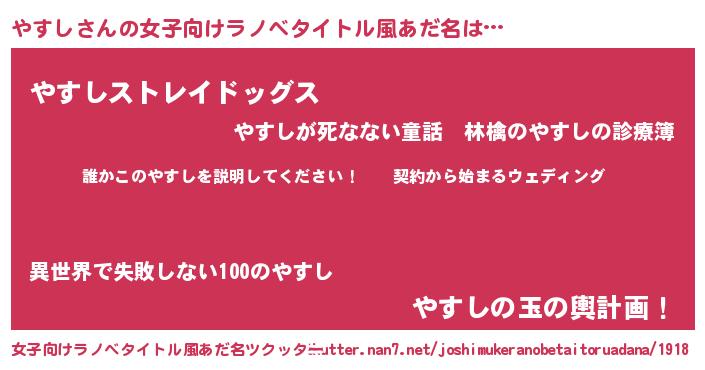 | 意味不明あだ名 | 『ペロリンやすし』『自称やすし』 |