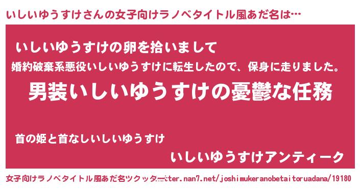 | 男性向けラノベタイトル風あだ名 | 『うちのいしいゆうすけが世界を掌握している!』 |