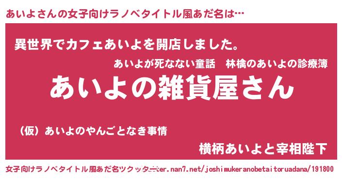 | 胡散臭い通販商品みたいなあだ名 | 『幸せが訪れる高級そうな壺…その名も「あいよ」』 |