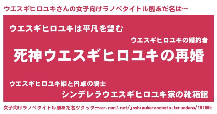 | ポケモン風あだ名 | 『ウックウザ』『ヒウエスギヒロユキ』 |