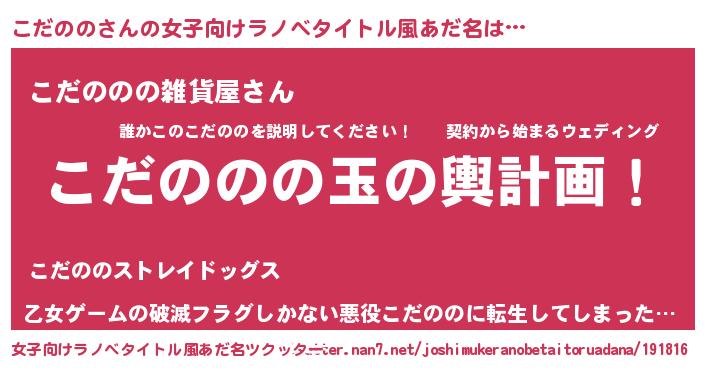 | 胡散臭い通販商品みたいなあだ名 | 『運命の人と巡り会える高級そうな絵画…その名も「こだのの」』 |
