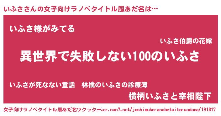 | 男性向けラノベタイトル風あだ名 | 『いふさという概念が存在しない退屈な世界 』 |