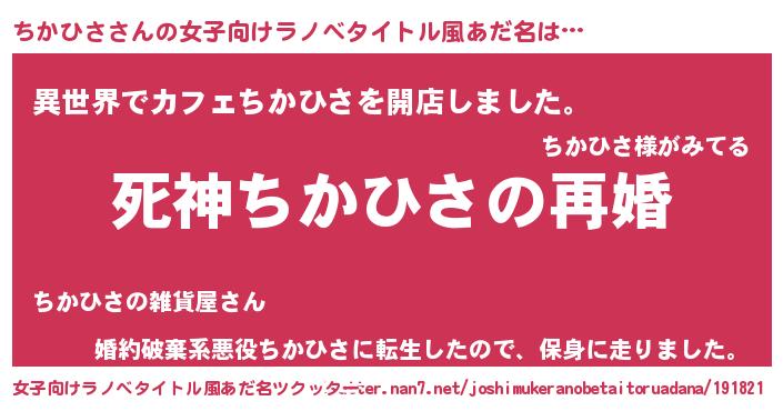 | 男性向けラノベタイトル風あだ名 | 『ノーゲーム・ノーチカヒサ』 |