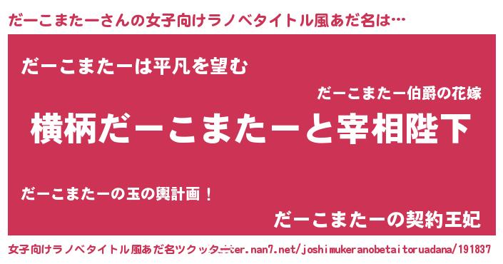 | 男性向けラノベタイトル風あだ名 | 『だーこまたーに滅ぼされるだけの簡単なお仕事です』 |