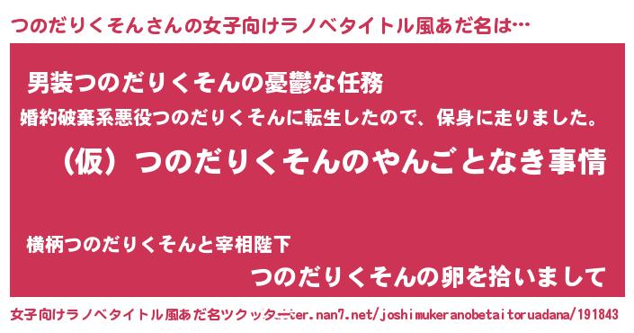 | 男性向けラノベタイトル風あだ名 | 『つのだりくそんの憂鬱』 |