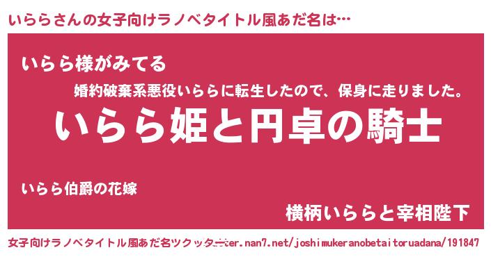 | 胡散臭い通販商品みたいなあだ名 | 『モテモテ間違いなしブレスレット…その名も「いらら」』 |