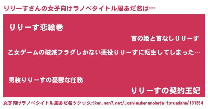 | 男性向けラノベタイトル風あだ名 | 『この素晴らしい世界にりりーすを!』 |