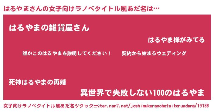 | 胡散臭い通販商品みたいなあだ名 | 『億万長者になれるブレスレット…その名も「はるやま」』 |