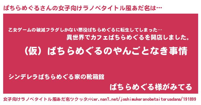 | 男性向けラノベタイトル風あだ名 | 『ばちらめぐるの憂鬱』 |