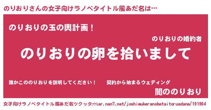 | 意味不明あだ名 | 『とにかく怪しいのりおり』 |