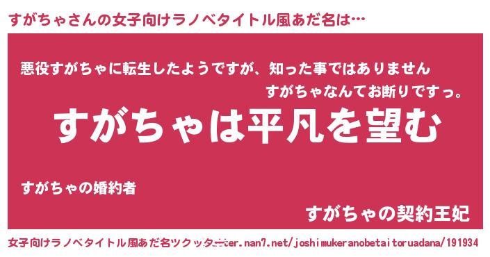 | 男性向けラノベタイトル風あだ名 | 『ダンジョンにすがちゃを求めるのは間違っているだろうか』 |