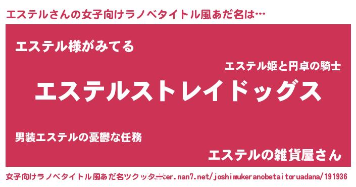 | 男性向けラノベタイトル風あだ名 | 『Re:エステルから始める異世界生活』 |