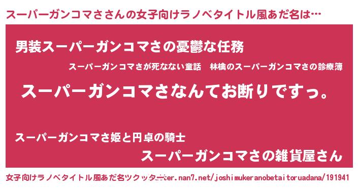 | 男性向けラノベタイトル風あだ名 | 『魔法科高校のスーパーガンコマさ』 |