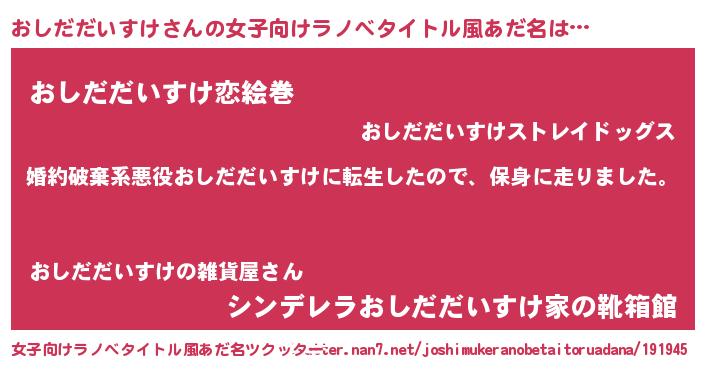 | 男性向けラノベタイトル風あだ名 | 『オシダダイスケスレイヤー』 |