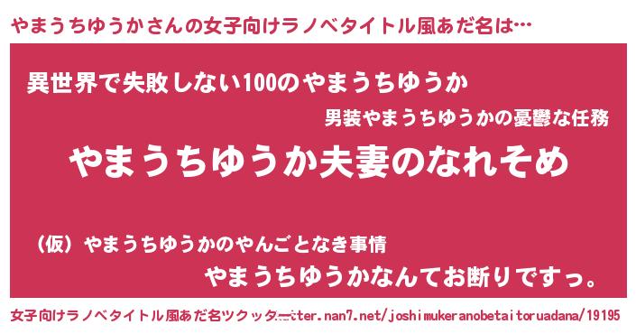 | 男性向けラノベタイトル風あだ名 | 『おまえをオタクにしてやるから、俺をやまうちゆうかにしてくれ! 』 |