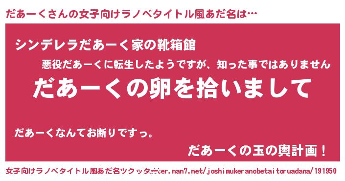 | ヘコむあだ名 | 『だあ太郎』『だあーく(苦笑)』 |