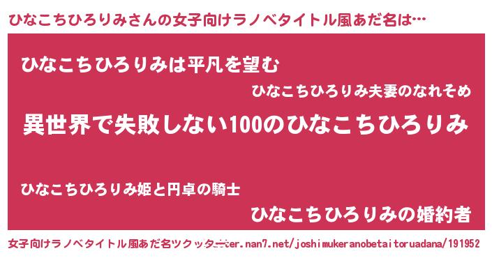 | 男性向けラノベタイトル風あだ名 | 『ひなこちひろりみという概念が存在しない退屈な世界 』 |