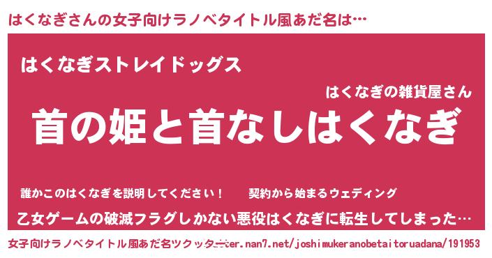| 男性向けラノベタイトル風あだ名 | 『はたらくはくなぎさま!』 |