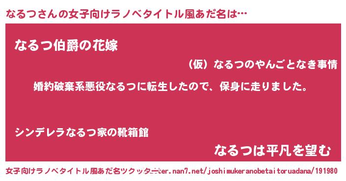 | ヒーロー風カッコイイあだ名 | 『ウルトラなるつマン』『幻影騎士ナル』 |