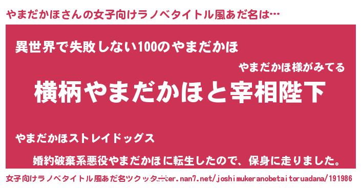 | 男性向けラノベタイトル風あだ名 | 『やまだかほに滅ぼされるだけの簡単なお仕事です』 |