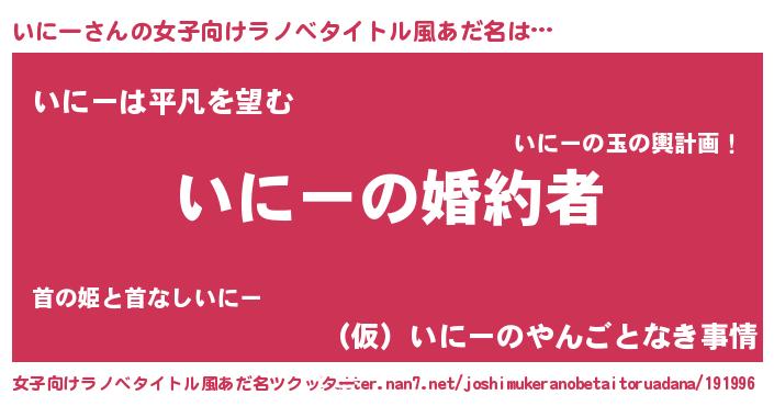 | 胡散臭い通販商品みたいなあだ名 | 『運命の人と巡り会える高級そうな壺…その名も「いにー」』 |