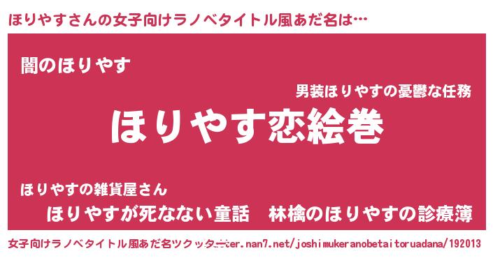 | ヒーロー風カッコイイあだ名 | 『愛の使者ほりやす』『最強戦士ホリヤス』 |