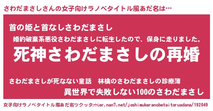 | 胡散臭い通販商品みたいなあだ名 | 『モンドセレクションを受賞した隕石のかけら…その名も「さわだまさし」』 |