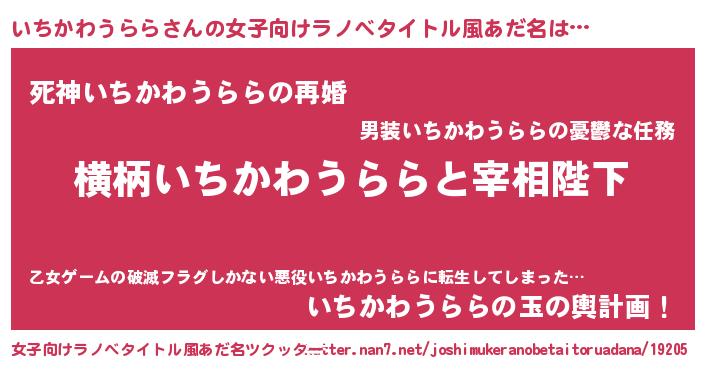 | 男性向けラノベタイトル風あだ名 | 『いちかわうららに滅ぼされるだけの簡単なお仕事です』 |