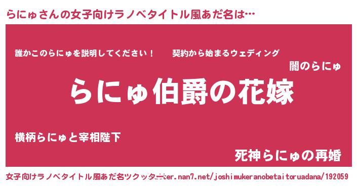 | ファンタジー風あだ名 | 『エターナルラニュー』『ラニフェル』 |