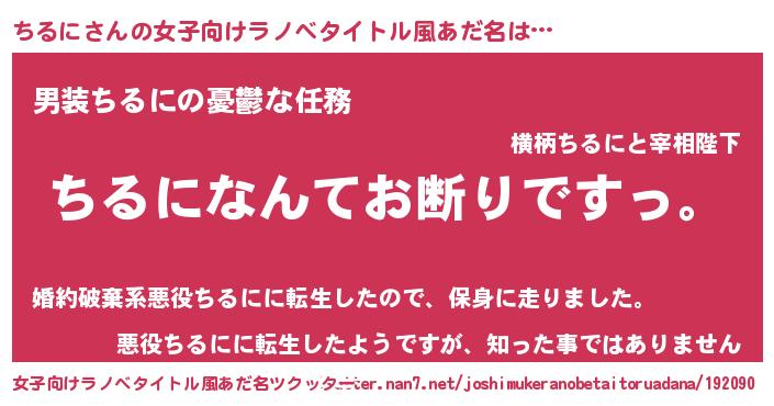 | 意味不明あだ名 | 『自称ちるに』『住所不定無職ちるに(98歳)』 |