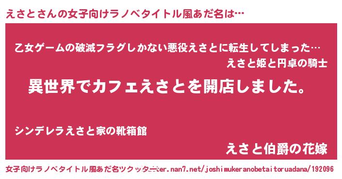 | 男性向けラノベタイトル風あだ名 | 『誰もが恐れるあのえさとが、ぼくの専属メイドになるようです。』 |