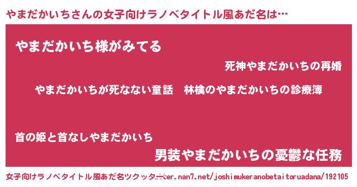 | ピコ太郎風あだ名 | 『ヤマ二郎』『ヤヤ太郎』『ピヤ一郎』 |