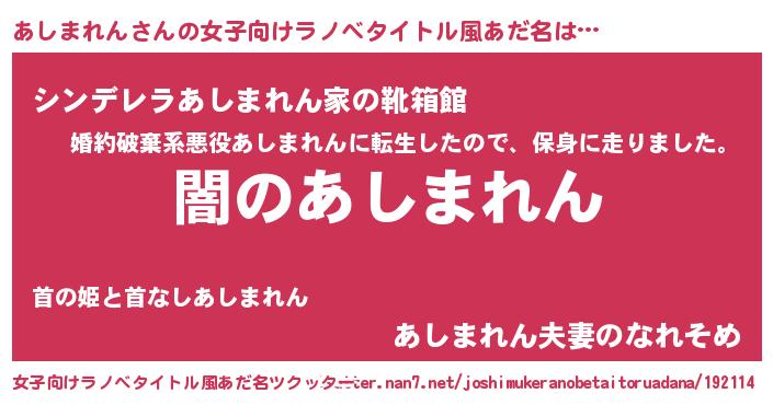 | 男性向けラノベタイトル風あだ名 | 『Re:あしまれんから始める異世界生活』 |