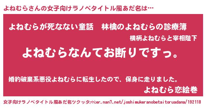 | 意味不明あだ名 | 『自称よねむら』『つくし科よねむら属』 |