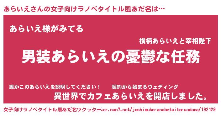 | ヘコむあだ名 | 『あらっちょ』『あらいえ(震え声)』 |