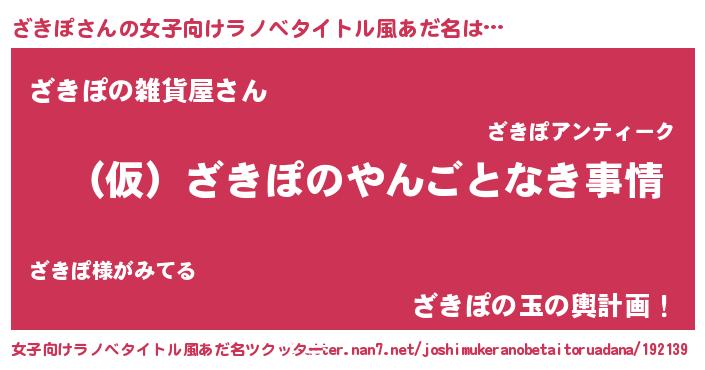 | 2回繰り返すあだ名 | 『ざきざき』『ざざきき』『わざわざ』 |
