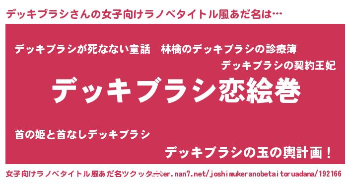| ヘコむあだ名 | 『デッキブラシ(小並感)』『デッお』 |