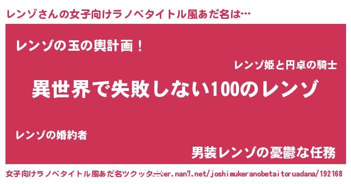 | 男性向けラノベタイトル風あだ名 | 『レンゾという概念が存在しない退屈な世界 』 |