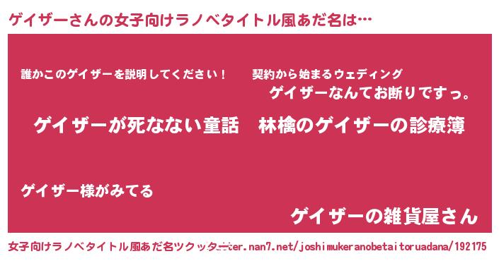 | 男性向けラノベタイトル風あだ名 | 『魔弾の王とゲイザー』 |