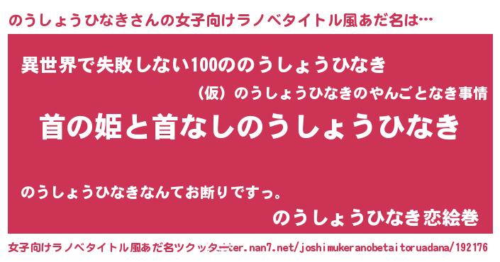 | ヘコむあだ名 | 『のうしょうひなき(笑)』『のうにー』 |