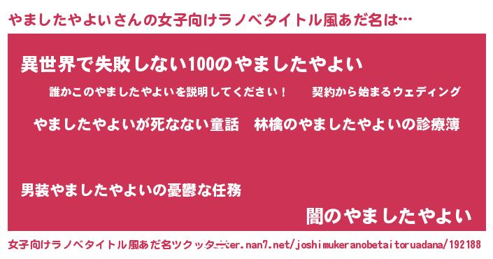 | 意味不明あだ名 | 『住所不定無職やましたやよい(7歳)』 |