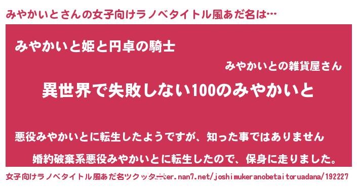 | 意味不明あだ名 | 『永久保存みやかいと』 |