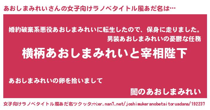| 男性向けラノベタイトル風あだ名 | 『あおしまみれいに滅ぼされるだけの簡単なお仕事です』 |