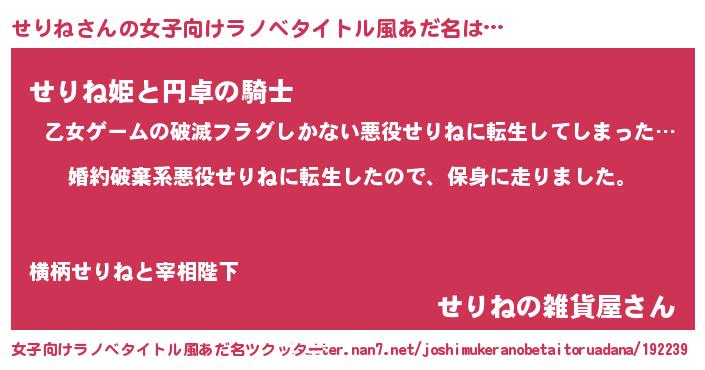 | 胡散臭い通販商品みたいなあだ名 | 『必ず成功するブレスレット…その名も「せりね」』 |