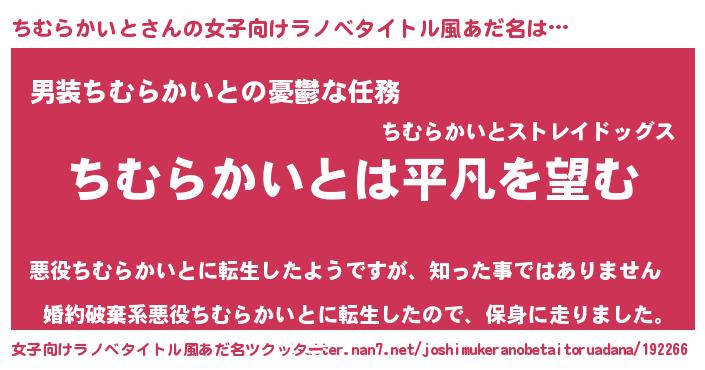 | 胡散臭い通販商品みたいなあだ名 | 『信頼と実績のペンダント…その名も「ちむらかいと」』 |