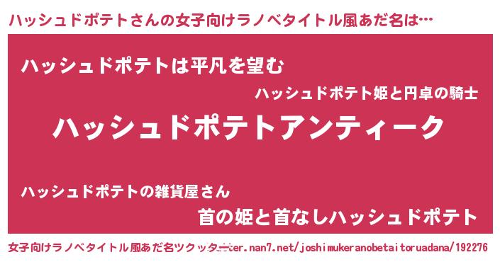 | 男性向けラノベタイトル風あだ名 | 『魔法科高校のハッシュドポテト』 |