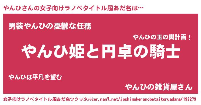 | 男性向けラノベタイトル風あだ名 | 『やんひの憂鬱』 |